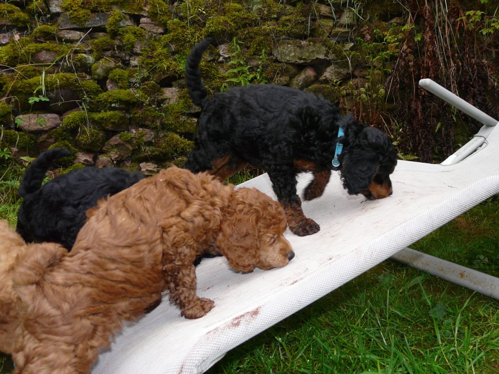 Das liegt daran, dass es inzwischen eine Sonnenpudel-Facebook-Gruppe gibt, wo vor allem diese beiden letzten Würfe immer wieder Beiträge einstellen. Die Gruppe steht natürlich auch allen anderen Sonnenpudel-Familien offen, bitte einfach bei mir melden.