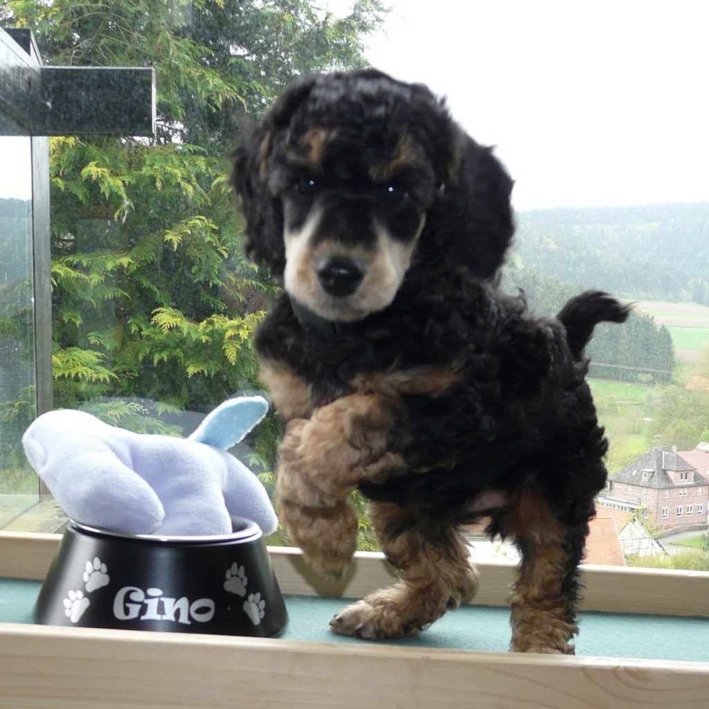 Und Gino? Der letzte Gigant wartet noch zwei Wochen bis er abgeholt wird. Solange lernt er, was so eben zum Hundeleben gehört. Aber Spiel und Spaß mit den anderen Sonnenpudeln kommen auch nicht zu kurz!