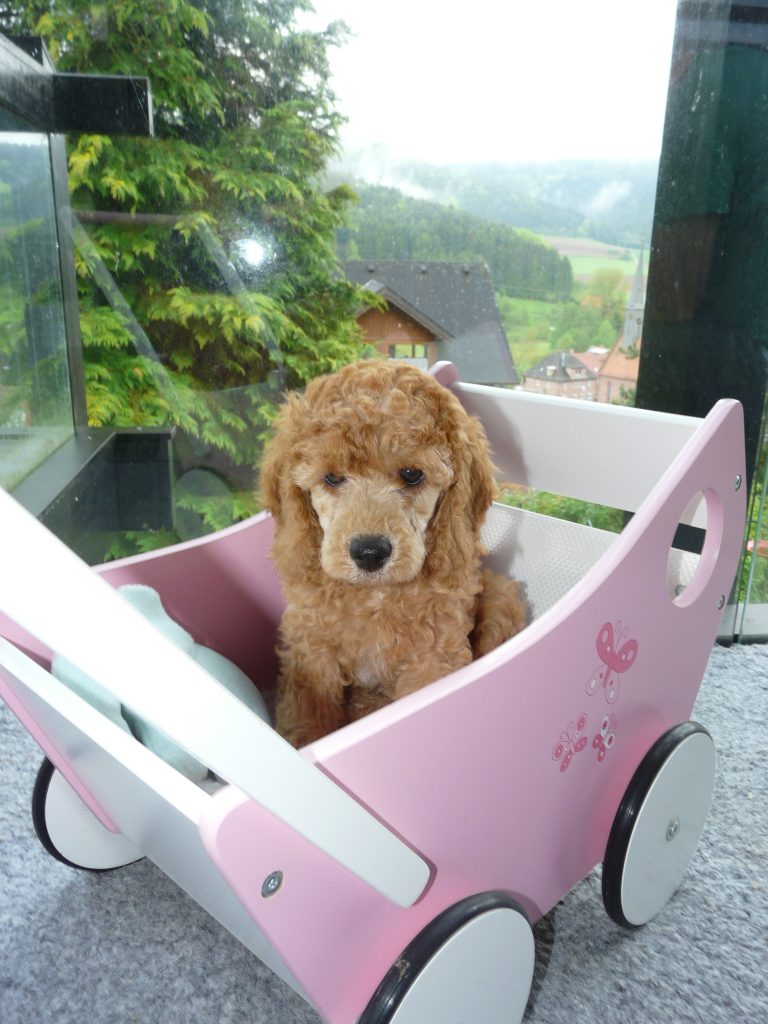 Muffin zog nach Nordbayern, auch zu einer schon Pudel-erfahrenen Familie. Dort wird er von Erwachsenen und vor allem den Kindern schon sehnsüchtig erwartet.